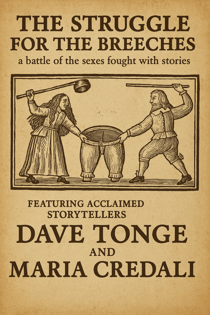 Professional storytellers Maria Credali and Dave Tonge use traditional tales woven together with irreverent banter to explore that age old question – who should wear the trousers?