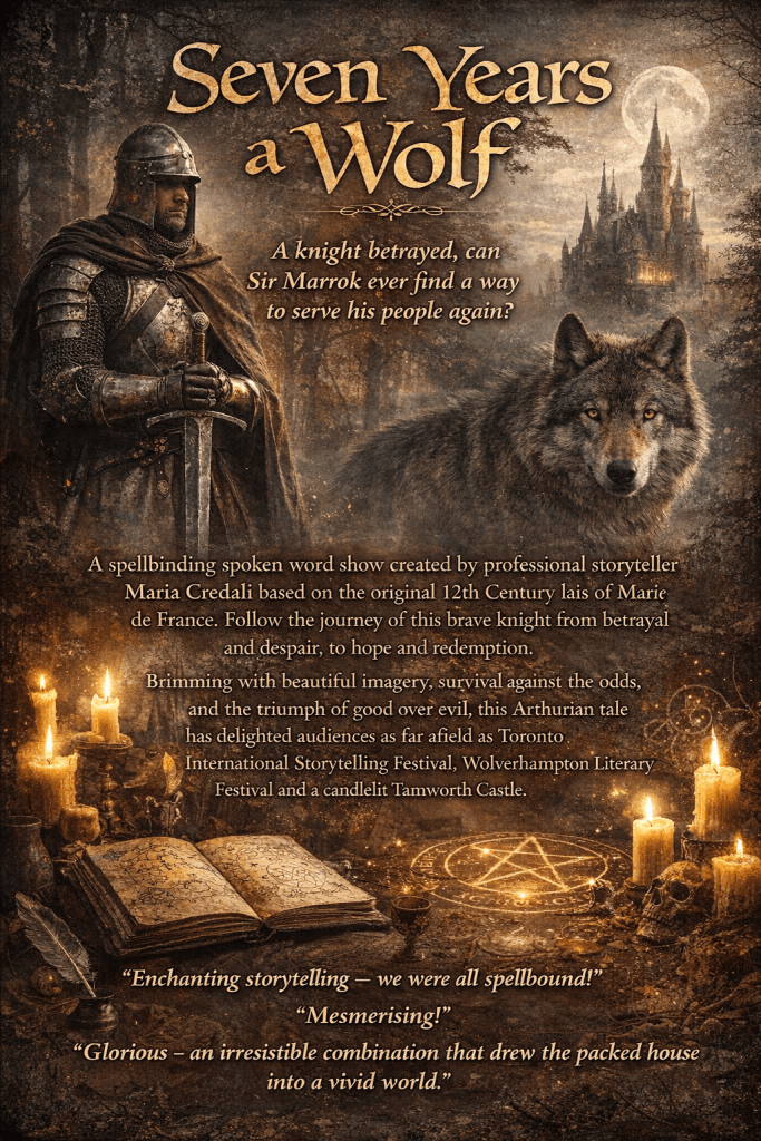 Performances, specially created story walks, after dinner talks, and workshops are all available. Have a look at the current story shows on offer below, or do you have something different in mind? Maria can create a storytelling event especially for you, a loved one, a particular venue or event. Get in touch by using the contact form, or emailing mariacredali@yahoo.co.uk to discuss your ideas.