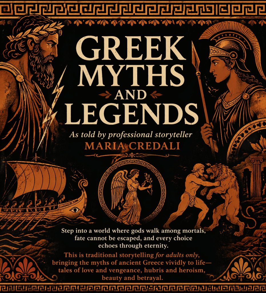 Performances, specially created story walks, after dinner talks, and workshops are all available. Have a look at the current story shows on offer below, or do you have something different in mind? Maria can create a storytelling event especially for you, a loved one, a particular venue or event. Get in touch by using the contact form, or emailing mariacredali@yahoo.co.uk to discuss your ideas.